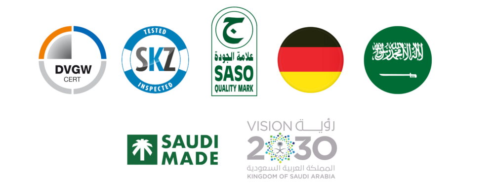 Tahweel’s products are manufactured according to German standards and utilize advanced technologies certified by the Drinking Water Authority DVGW, SKZ to ensure maximum efficiency, ensuring durability in both hot and cold-water pressures, and resistance to harsh environmental conditions. These solutions meet Saudi (SASO) and German (DIN) standards and offer a service life of up to 50 years.