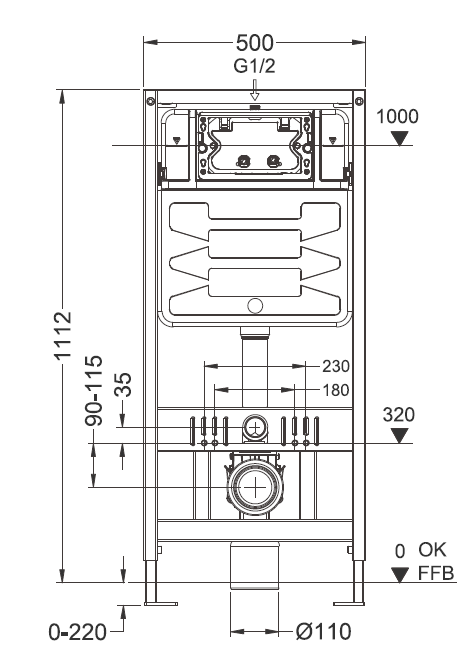 - The frame includes galvanized iron arms to be installed in the wall with a fisher (with adjustable length from 13.5cm to 19cm)
